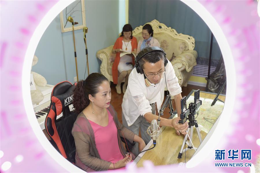 7月11日,一名教師在網(wǎng)絡(luò)播音實(shí)操室指導(dǎo)市民學(xué)習(xí)直播技能。