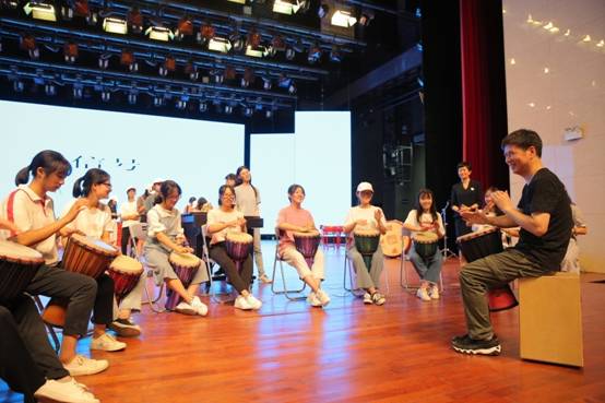 小玫瑰計(jì)劃聯(lián)合福建師大功夫樂團(tuán),30日下午在客家大劇院,功夫樂團(tuán)的首席藝術(shù)指導(dǎo)李林老師和他的團(tuán)隊(duì),帶領(lǐng)小玫瑰們認(rèn)識(shí)不同的打擊樂樂器,并逐一給大家做了示范,李林老師還親自教授小玫瑰們進(jìn)行了非洲鼓的練習(xí),帶著小玫瑰們?nèi)抡J(rèn)知了打擊樂的魅力。參與到打擊樂學(xué)習(xí)中的還有6名分別代表長(zhǎng)汀一中、長(zhǎng)汀二中、新橋中學(xué)、河田中學(xué)、龍宇中學(xué)、濯田中學(xué)的音樂老師,為了讓更多孩子體會(huì)打擊樂的美妙,6名音樂老師代表各自的學(xué)校接受了福建師大功夫樂團(tuán)贈(zèng)送的共十二面非洲鼓。