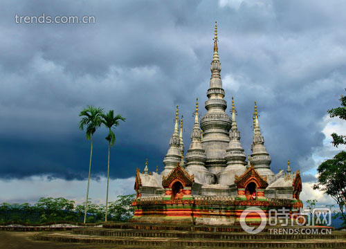 時(shí)值正午,艷陽高照,藍(lán)藍(lán)的天空中飄著朵朵白云,絲毫看不出隆冬時(shí)節(jié)的痕跡。西雙版納的清晨,總能看到四周彌漫著濃厚的霧氣,起初還以為天要下雨,可是中午太陽一出來就把霧氣驅(qū)散得無影無蹤,一派晴好。我們的越野車?yán)^續(xù)疾駛在高速公路上,兩旁高大的熱帶喬木從車旁一閃而過,迎面而來的風(fēng)清新而又純凈,時(shí)而有香蕉地、橡膠林或者茶園從眼前閃過。正值香蕉成熟的季節(jié),枝頭應(yīng)當(dāng)是掛滿了誘人的金黃色香蕉,但蕉農(nóng)們卻給它們穿上了一層藍(lán)色的尼龍衣,據(jù)說這是為了防止成熟的香蕉遭受病蟲害的侵?jǐn)_。不遠(yuǎn)處一排排的橡膠林整齊排列著,那些到了割膠年齡(通常6?8年)的橡膠樹,膠農(nóng)就在橡膠樹下放一個(gè)碗,開割橡膠樹的橡膠則沿著環(huán)狀的刀痕滴到碗里。茶園是沿著山坡逐級(jí)上升的,很有層次感,為了來年春天能萌發(fā)更多新茶,茶農(nóng)們都用剪刀將茶樹給剪平了。這里潮濕的氣候,加上酸性的棕紅壤,得天獨(dú)厚的地理?xiàng)l件使這里成為普洱茶的四大產(chǎn)區(qū)之一。