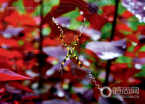 我們繼續(xù)往林子深處走,突然發(fā)現(xiàn)一片葉子在動(dòng),定睛一看,原來是只蜥蜴。它深黑色的背上鑲嵌著些許黃綠與枯黃,與周圍的葉柄和枯葉的顏色非常相近,這在生物學(xué)上稱為保護(hù)色。如此類似環(huán)境的保護(hù)色,連機(jī)警的人類都不易發(fā)覺,更不要說一般的天敵了。