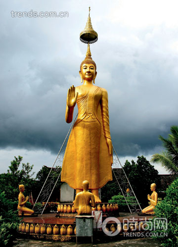 路經(jīng)景洪市(西雙版納州州府)的時(shí)候,一個(gè)高大的“人字形”大橋映入眼簾,司機(jī)黃師傅告訴我們,這是剛剛修建不久的西雙版納大橋,橋下穿過的便是“東方多瑙河”——瀾滄江。現(xiàn)在正值西雙版納的霧涼季,雨水非常少,因此,這時(shí)候的瀾滄江江水,沒了那種洶涌奔騰的氣勢,反倒有“風(fēng)從水上走過,留下粼粼波紋”的靜謐之美。站在大橋上,溫暖而潮濕的熱帶風(fēng)迎面吹來,愜意而怡人,放眼望去,一片又一片的綠隨著綿亙起伏的山巒波動(dòng),暗綠的熱帶雨林,墨綠的橡膠成林,還有翠綠的香蕉基地??“東方多瑙河”像是一條“黃金命脈”,供養(yǎng)著兩岸的生命,綿延而悠長。