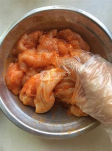 4、用奧爾良腌料腌制兩個(gè)小時(shí)以上,我是隔夜腌制的