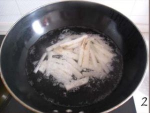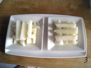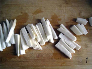 2、鍋中坐水,水開(kāi)后下入山藥,水再次沸騰后焯一分半鐘即可。