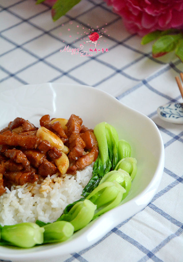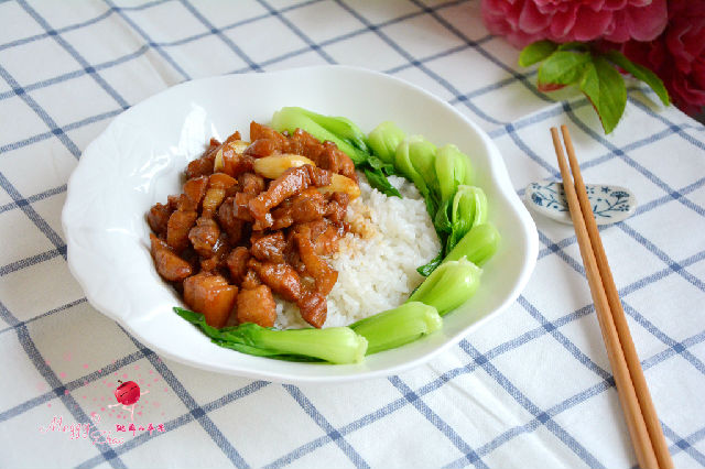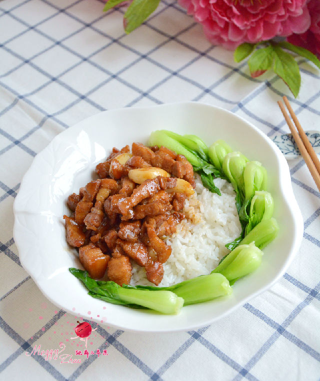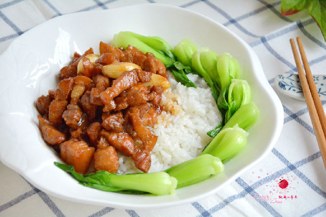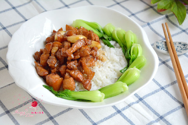 肉爛且筋道,還有濃濃的肉汁;小油菜碧綠清淡,正好補充了維生素,還能中和一下肉的濃郁。白米飯舀上一大碗,稀里呼嚕的一大碗就進肚兒了。其實無非就是換了一種裝飯的方式, 吃起來卻噴香無比。