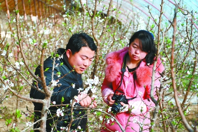 央廣網(wǎng)蘭州2月28日消息 敦煌市林業(yè)技術人員在日光溫室查看李廣杏樹長勢情況。日前,該市月牙泉鎮(zhèn)現(xiàn)代農業(yè)科技示范園區(qū)的一座設施林果示范溫室內李廣杏杏花競相開放,粉白相映,宛若云霞,分外迷人。 本報通訊員 張曉亮