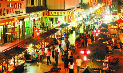 入夜的敦煌市沙州市場燈火輝煌
