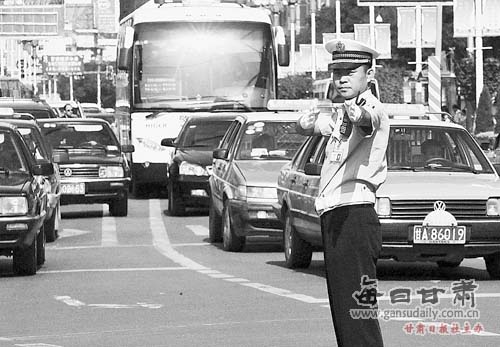 7月20日,蘭州市迎來了入夏以來的最高氣溫35℃。在一線工作的交警、公交司機(jī)等堅(jiān)持在高溫下工作,為大家服務(wù)。記者 張鐵梁 攝