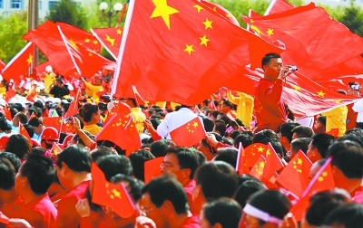 愛國(guó)歌曲大家唱活動(dòng)現(xiàn)場(chǎng)。