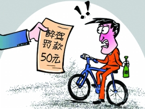 醉酒駕駛非機動車將被罰款50元