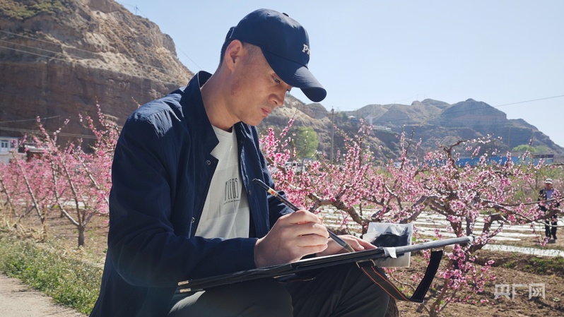 游客在太石鎮(zhèn)賞花寫生(央廣網(wǎng)記者 魏晉雪 攝)