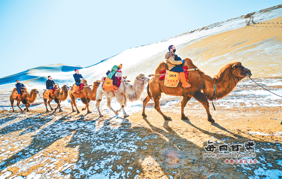 敦煌著名風(fēng)景區(qū)鳴沙山·月牙泉雪后初霽、云蒸霞蔚,吸引了眾多游客和當(dāng)?shù)厥忻袂巴p景游玩、拍照留念。本報(bào)通訊員王斌銀