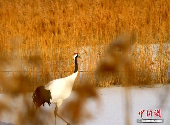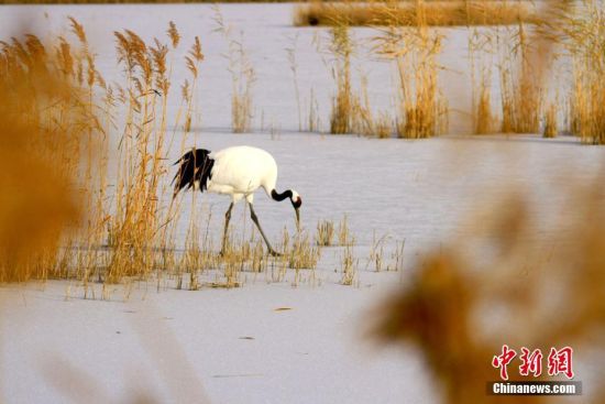 央廣網蘭州12月2日消息 冬日清晨,放飛的丹頂鶴在濕地上空飛舞一圈后在雪中跳躍覓食,金黃的蘆葦,翩翩起舞的白鶴構成冬日一道美麗風景。2014年3月,張掖國家濕地公園從黑龍江齊齊哈爾扎龍自然保護區(qū)引進14只國家一級保護動物丹頂鶴和2只白頭鶴。經過適應期、合群期,現在丹頂鶴已經完全適應戈壁濕地的生活。