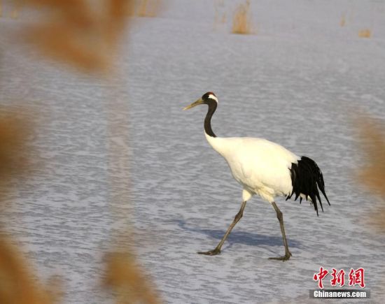 圖為丹頂鶴“閑庭漫步”。陳禮 攝