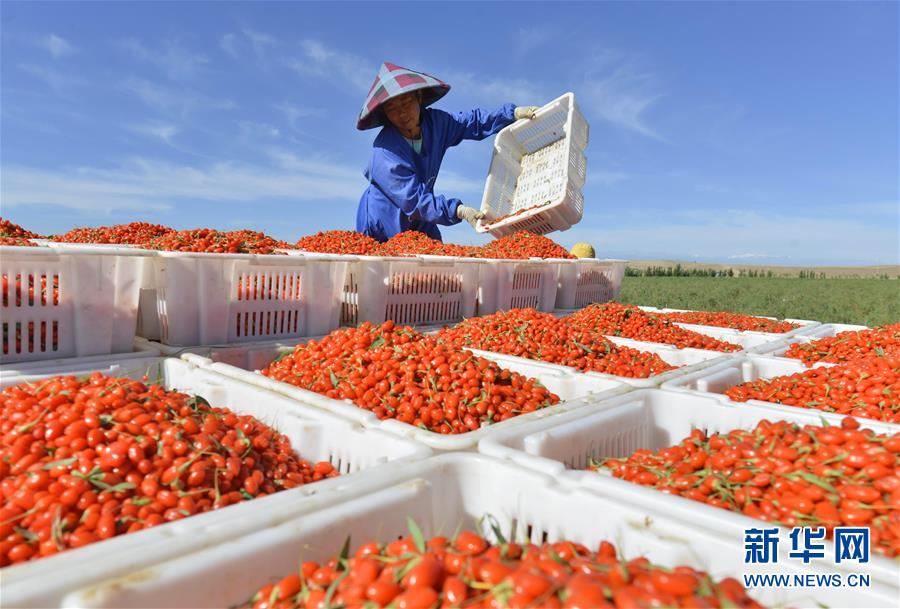 在位于河西走廊的甘肅省張掖市高臺縣,現(xiàn)在正是枸杞成熟的季節(jié),農(nóng)民們忙著采摘成熟的枸杞,進行晾曬加工。近年來,高臺縣在戈壁荒灘等非耕地上發(fā)展特色林果產(chǎn)業(yè),取得良好經(jīng)濟和生態(tài)效益。目前,全縣引進5家企業(yè)在戈壁灘種植枸杞面積達2.2萬畝,產(chǎn)品遠銷國內(nèi)外市場。