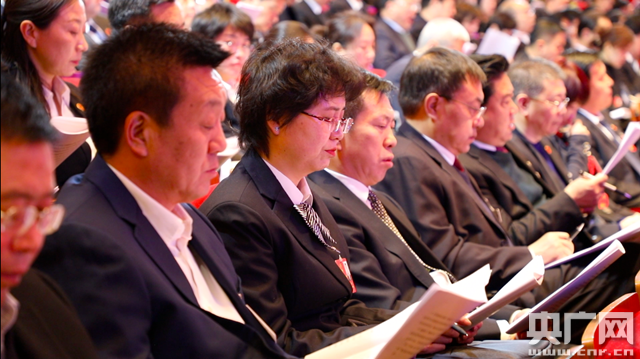 與會代表們聽政府工作報告(央廣網(wǎng)記者 王妍 攝)
