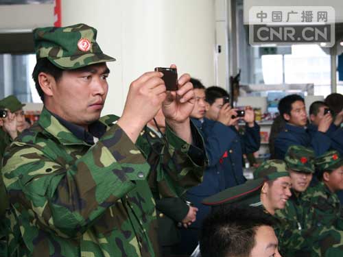 站臺(tái)是送別的最后一站,在歡送隊(duì)伍里,幾名車站職工與送行的士兵一起唱起那首老歌:“送戰(zhàn)友,踏征程,默默無語兩眼淚,耳邊響起駝鈴聲……”當(dāng)火車緩緩啟動(dòng)時(shí),無數(shù)雙手在車窗前揮舞,遠(yuǎn)去的列車雖然拉開了時(shí)空的距離,但它卻永遠(yuǎn)拉不開戰(zhàn)友和戰(zhàn)友之間、鐵路職工和子弟兵之間的情誼。(通訊員于海生) |