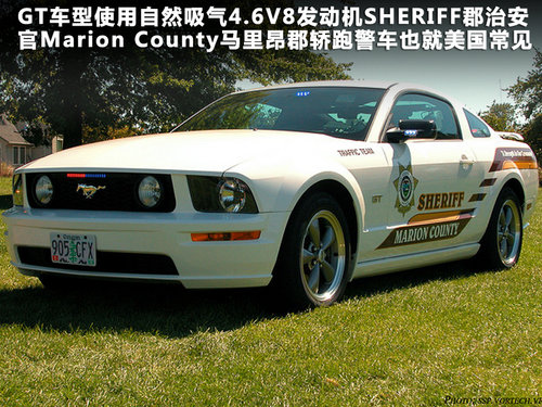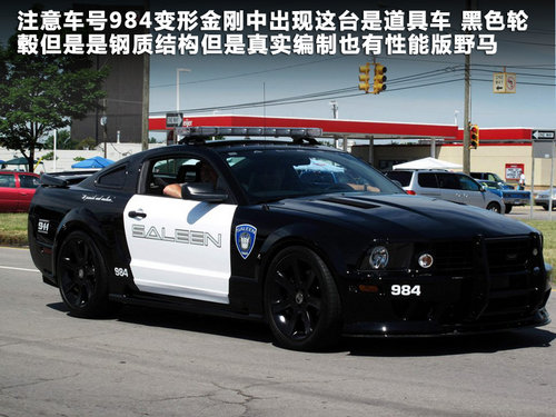 以上兩種車型都是高性能的Mustang S281。Mustang是一個(gè)改裝調(diào)校廠,一具4.6升的3氣門V8引擎,采用機(jī)械增壓,SALEEN針對(duì)性強(qiáng)化植入TwinScrew的機(jī)械增壓裝置后最大輸出400馬力569牛米。圖中的550號(hào)警車是賽道導(dǎo)引用車。