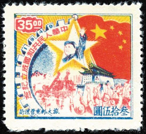 1949年10月1日,中華人民共和國(guó)成立,由于歷史條件限制,國(guó)家郵政沒(méi)有及時(shí)發(fā)行建國(guó)紀(jì)念郵票。當(dāng)年11月1日,東北解放區(qū)的旅大郵電管理局發(fā)行了《中華人民共和國(guó)成立紀(jì)念》一套郵票,這是新中國(guó)成立后發(fā)行最早的國(guó)慶題材郵票。