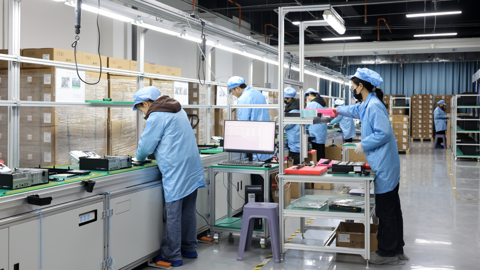 “生產(chǎn)線共有20多道工序,涵蓋組裝、測試、老化、包裝四大環(huán)節(jié)!备拭C誠龍信息科技有限公司生產(chǎn)線線長馬興龍介紹,生產(chǎn)過程中嚴格執(zhí)行自檢、互檢流程,通過功能抗壓測試、老化測試等環(huán)節(jié)層層把關,確保每一臺出廠電腦質量合格。