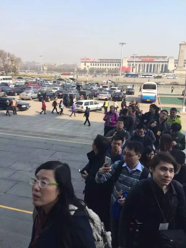 ↑ 政協(xié)十二屆四次會議新聞發(fā)布會,記者排隊入場 ↑