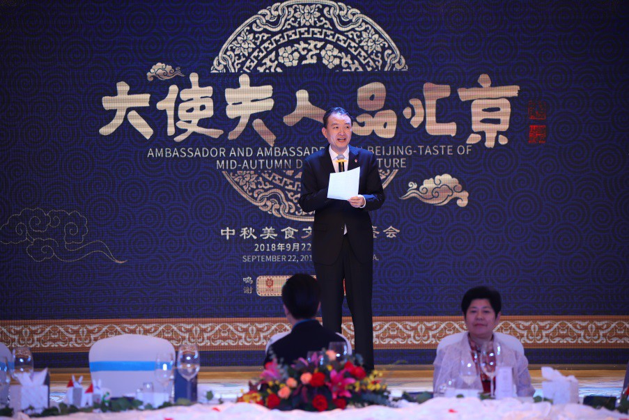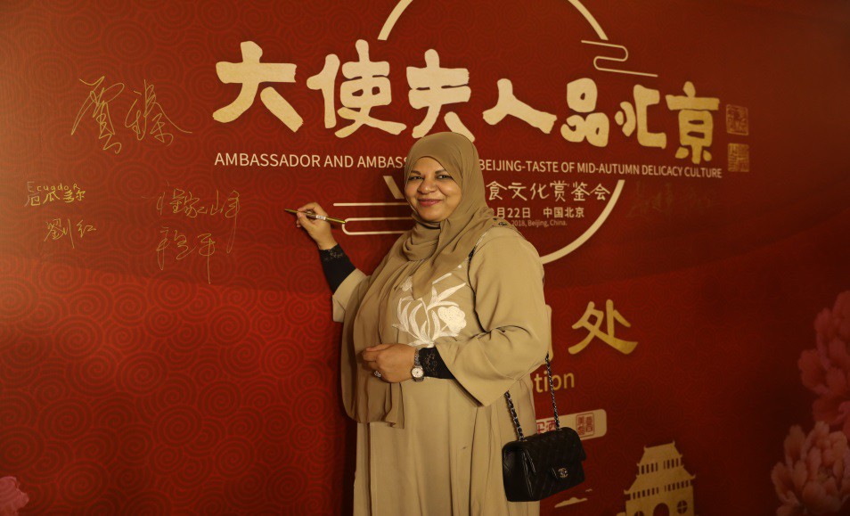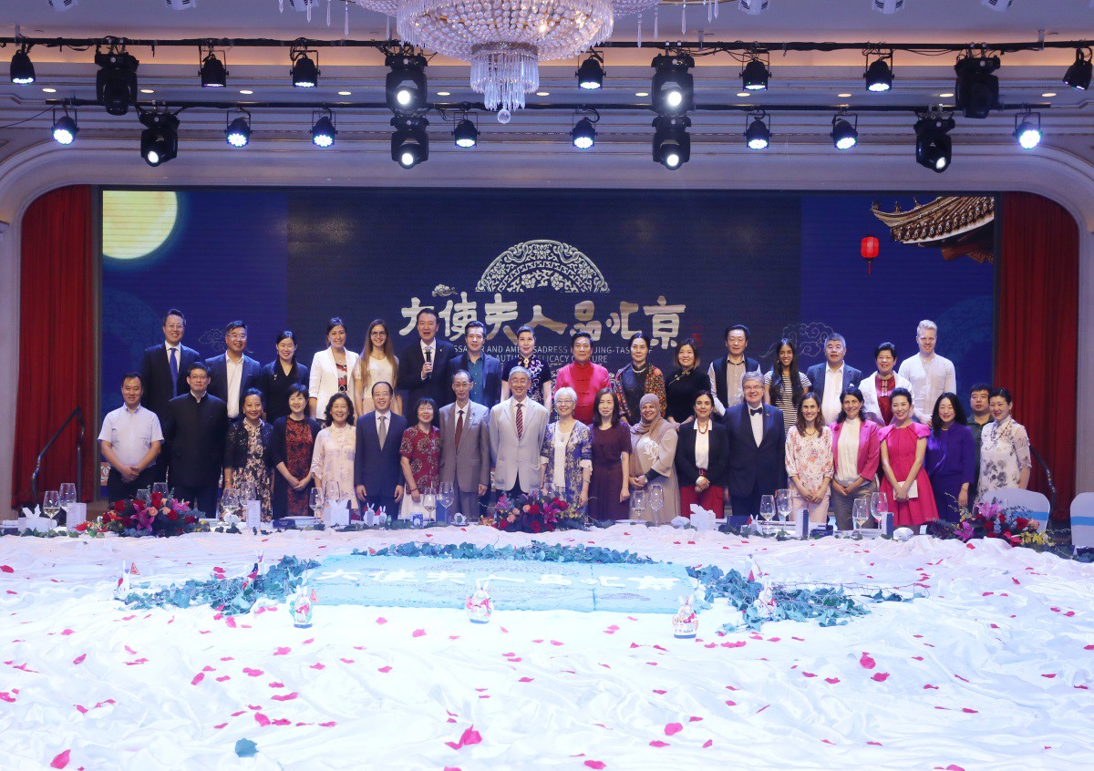 2018年9月22日,中秋節(jié)前夕, “大使夫人品北京——中秋美食文化鑒賞會(huì)”在北京宴宴會(huì)廳舉行。眾多中外使節(jié)及夫人齊聚一堂,一起做月餅、品巖茶、寫書畫、聽昆曲、賞緙絲,度過了一個(gè)充滿中國韻味的文化之夜。