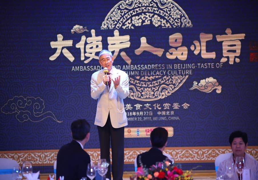 中國國際經(jīng)濟(jì)交流中心副理事長、原中國駐法大使、原外交學(xué)院院長趙進(jìn)軍先生致辭時(shí)表示:“中國有句古詩‘海內(nèi)存知己,天涯若比鄰’。雖然國際友人遠(yuǎn)離故土,不能與家人共聚良宵,但也正是因?yàn)橛兄T位在此為中外友誼的建設(shè)與發(fā)展默默耕耘,才讓更多的人此刻能夠與家人共享團(tuán)圓!壁w大使還向駐華使節(jié)和夫人們異地遠(yuǎn)方的親人們問好,給他們送去中秋的問候,遙祝他們身體健康!