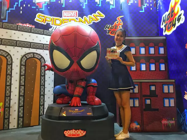 此次活動恰逢電影《蜘蛛俠》上映之際,在潮流玩具展現場,萌萌的蜘蛛俠,讓主持人鹿馨忍不住過去合影!