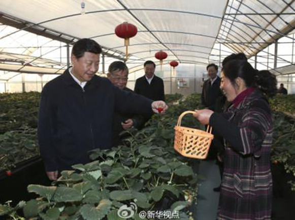 【現(xiàn)場(chǎng)】今年12月13日,江蘇鎮(zhèn)江世業(yè)鎮(zhèn)四季春農(nóng)業(yè)園里,高架草莓種植技術(shù)吸引了習(xí)總書記目光。在大棚里,習(xí)近平詢問種草莓用不用培養(yǎng)缽、產(chǎn)量銷路如何。他還回憶起上世紀(jì)80年代在河北正定工作時(shí),曾專門到滿城考察引進(jìn)草莓新品種。他鼓勵(lì)在場(chǎng)的農(nóng)業(yè)科技專家趙亞夫把好技術(shù)推廣起來,帶動(dòng)群眾致富。