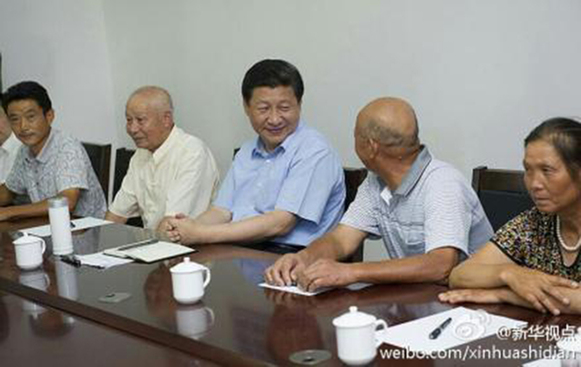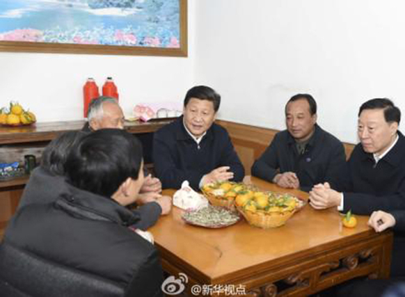 習(xí)近平在河北省阜平縣看望慰問困難群眾,考察扶貧工作。新華社記者 蘭紅光 攝