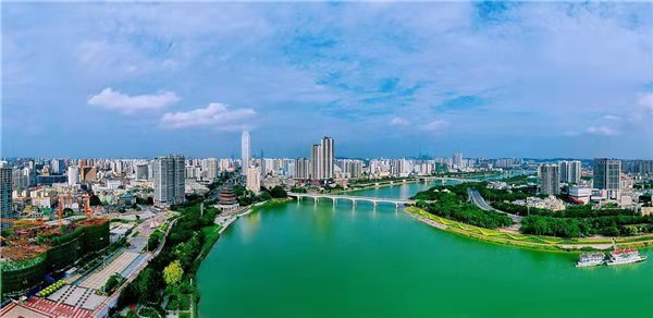 南寧城市風(fēng)光,邕江兩岸綠意盎然,高樓林立。(央廣網(wǎng)發(fā) 黎子琦攝)