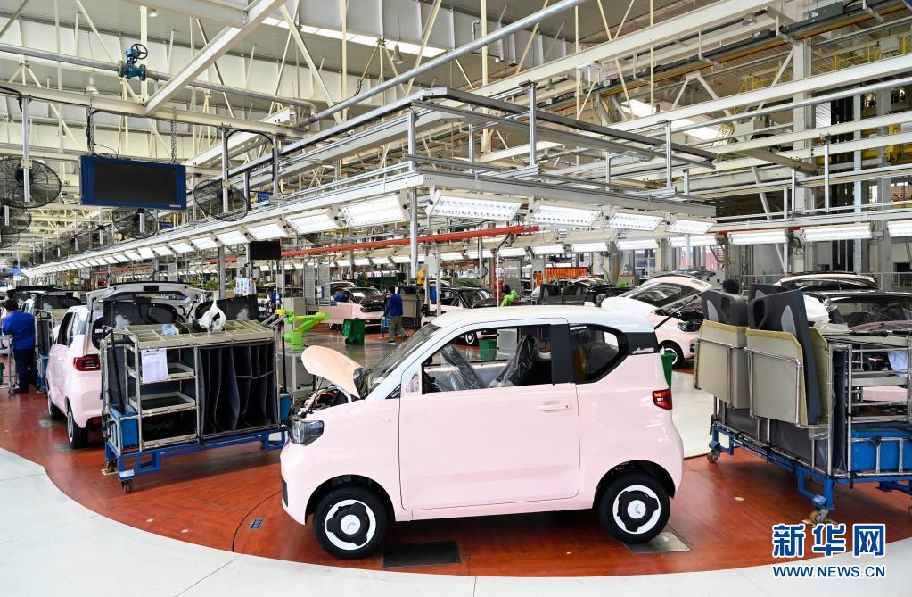 8月12日,在廣西柳州一家汽車企業(yè),工人在新能源汽車生產(chǎn)線上忙碌。