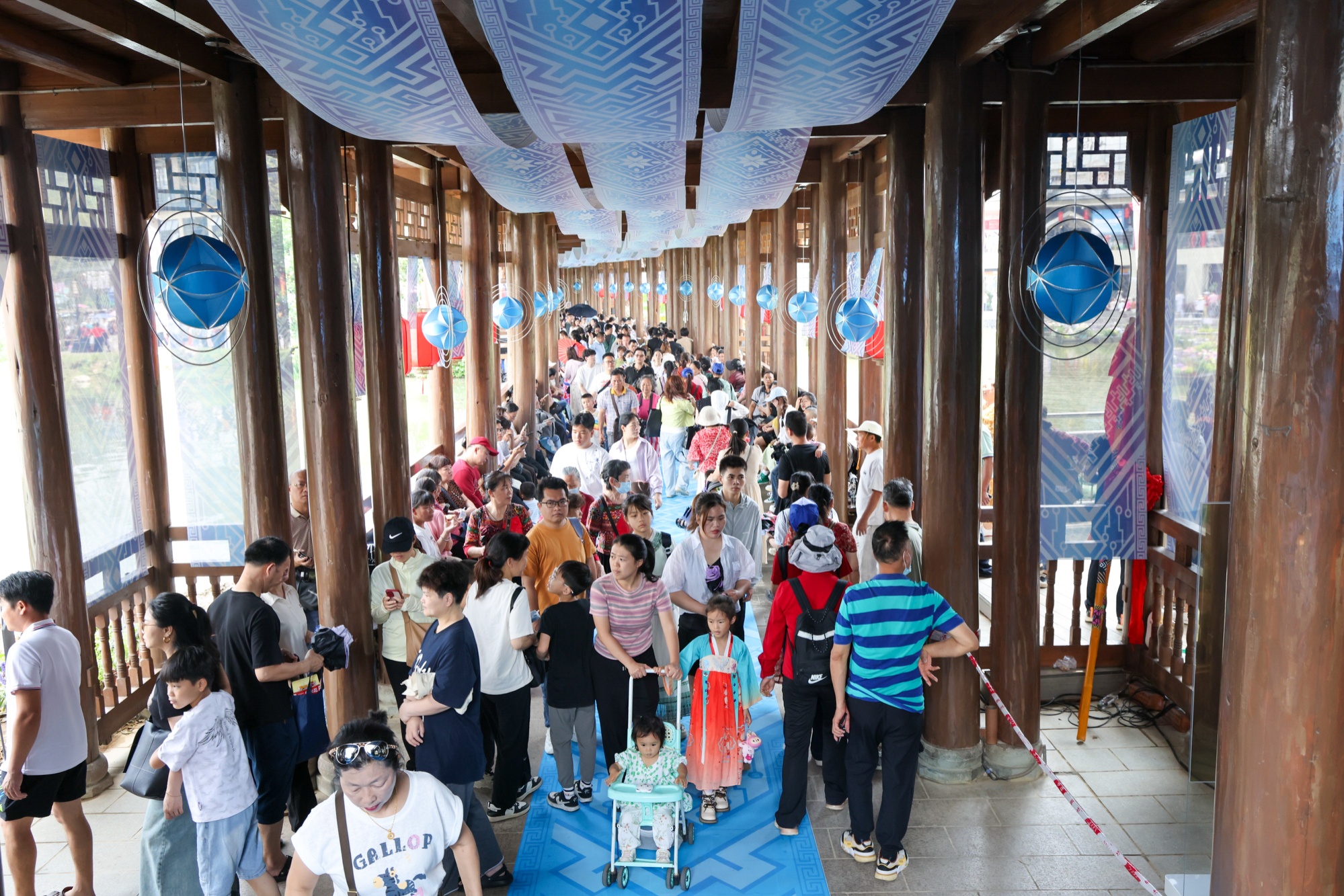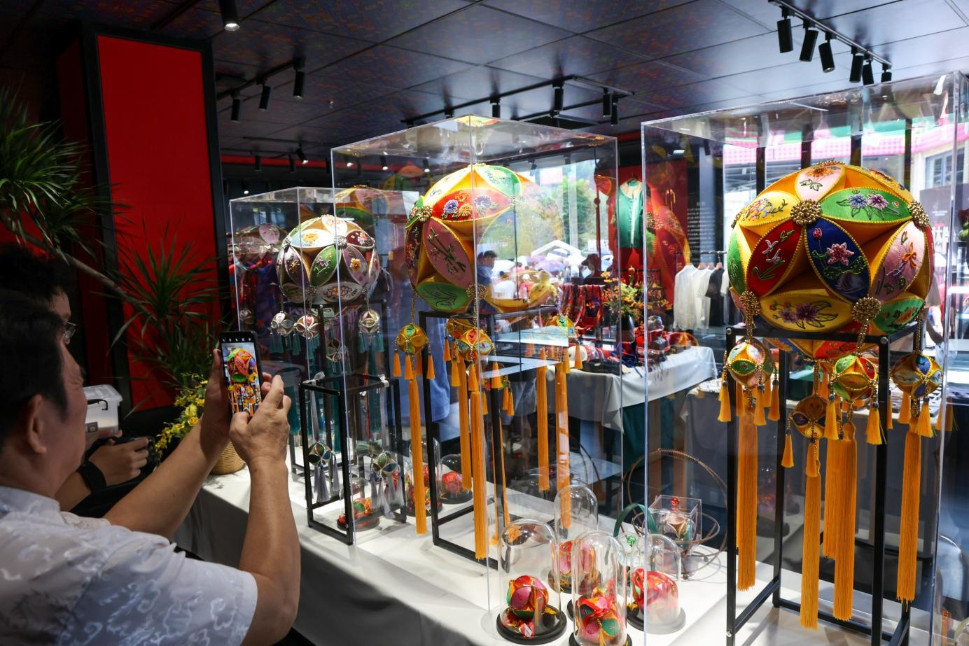 繡球是壯族重要的文化符號之一,現(xiàn)場群眾紛紛駐足拍照打卡(央廣網(wǎng)發(fā) 徐天保 攝)