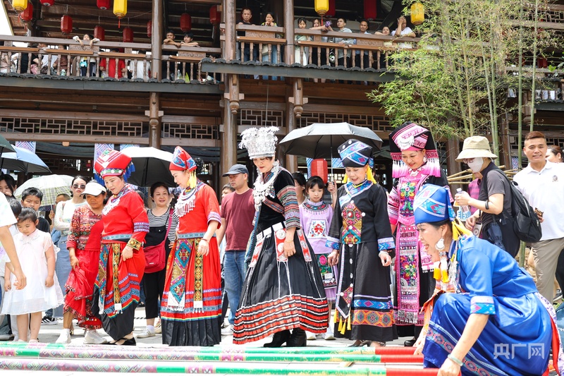 群眾體驗竹竿舞(央廣網(wǎng)記者 梁瑜琳 攝)