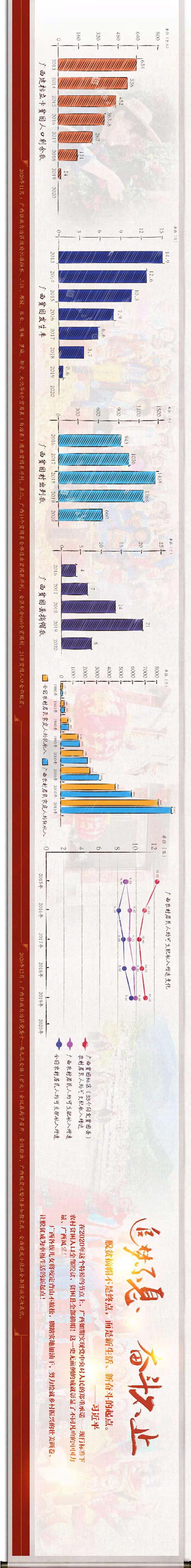 長(zhǎng)卷分為“久困于窮”“戰(zhàn)天斗地”“成就輝煌”三個(gè)篇章,既著眼于宏大敘事,也囊括了“豬籠洞”“天等不等天”等脫貧特寫,以及黃文秀、陳開(kāi)枝等戰(zhàn)貧人物的微觀特寫;既包含了30多年來(lái)“廣西扶貧大事記”時(shí)間軸形式的線性梳理,也有展現(xiàn)廣西貧困群眾從行路、飲水、住房、上學(xué)、就醫(yī)、用電、增收的“七難”到行路暢、飲水甜、住房安、上學(xué)便、就醫(yī)惠、用電易、增收快的“七巨變”的場(chǎng)景式鏡頭。