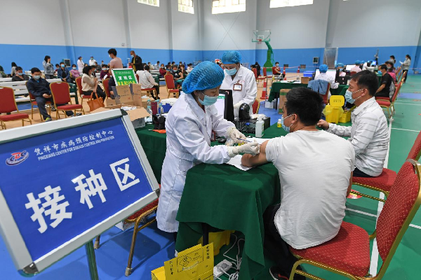 市民有序進(jìn)行接種(央廣網(wǎng)發(fā) 龐立堅(jiān)攝)