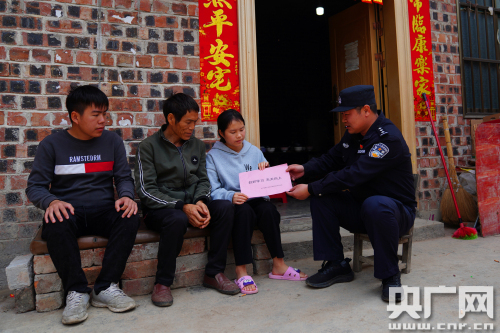 李彬代表派出所給貧困戶上高中的女兒捐款(羅盛 攝)
