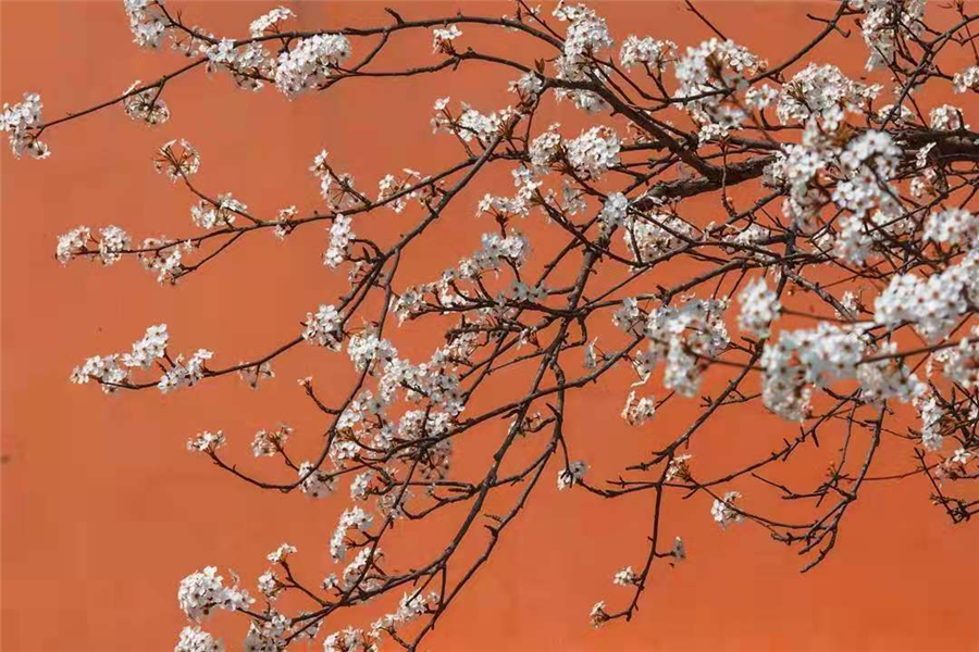 梨花與紅墻相映成畫(央廣網(wǎng)發(fā) 黎遠(yuǎn)偉攝)