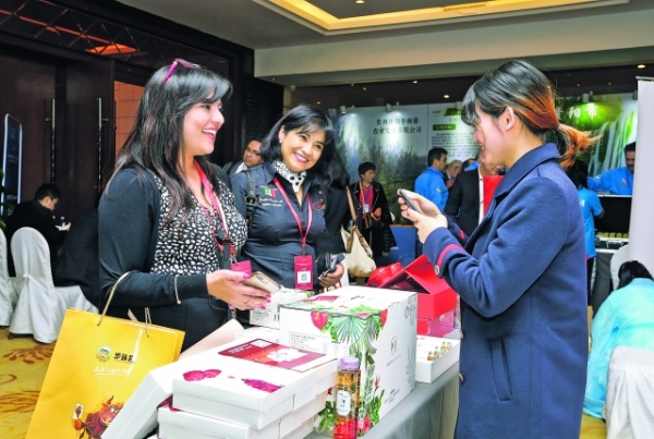 圖為嘉賓與參展企業(yè)相談甚歡,彼此留下聯(lián)系方式。記者 石照昌 攝