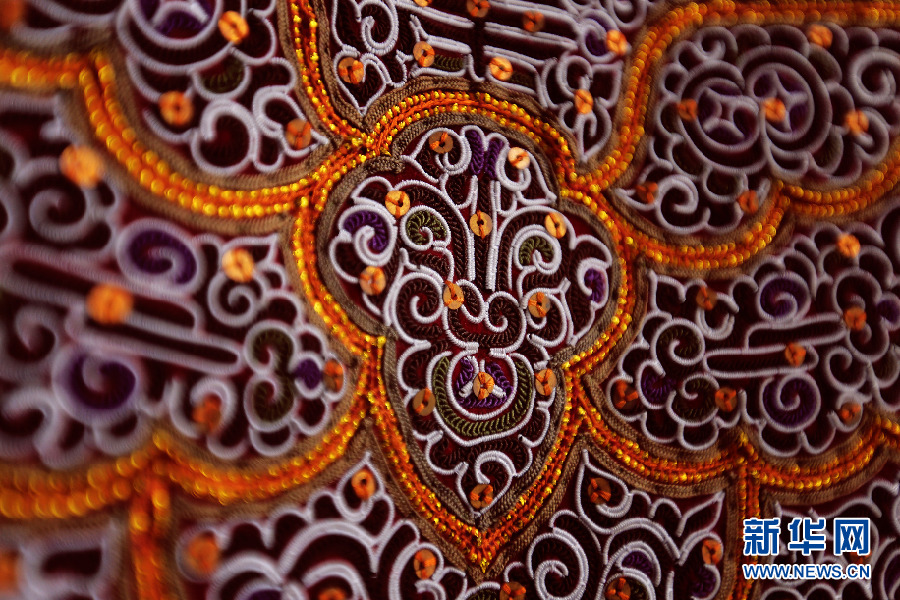 馬尾繡具有淺浮雕感,造型抽象而夸張。新華網(wǎng) 盧志佳 攝 -
