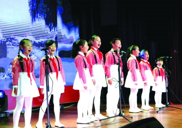 圖為小學生合唱《讓我們蕩起雙槳》。