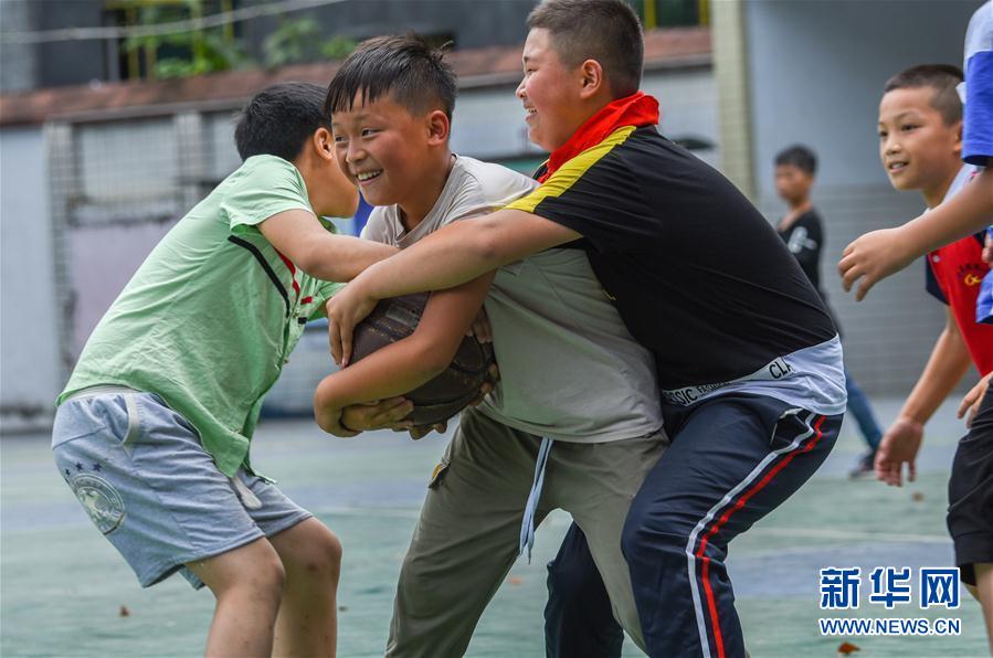 貴州松桃:山區(qū)留守兒童的快樂(lè)暑假,7月29日,貴州省銅仁市松桃苗族自治縣甘龍鎮(zhèn)中心完小的學(xué)生在做搶球游戲。新華社發(fā)(龍?jiān)?攝) 7月29日,在貴州省銅仁市松桃苗族自治縣甘龍鎮(zhèn)中心完小,志愿者(掛胸牌者)和學(xué)生在做游戲。