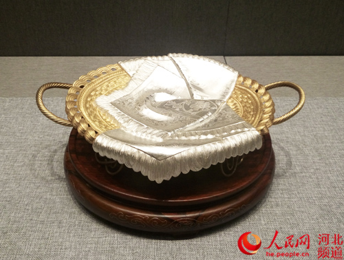 圖為在2014年APEC領(lǐng)導(dǎo)人會(huì)議期間,被國(guó)家主席習(xí)近平夫人彭麗媛定為國(guó)禮,贈(zèng)送給與會(huì)各國(guó)的領(lǐng)導(dǎo)人夫人的《和美》純銀絲巾果盤。朱弘揚(yáng) 攝