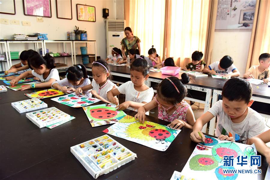 7月5日,在河北省新樂市青少年活動(dòng)中心,孩子們參加繪畫興趣班。暑假來臨,河北省新樂市的不少小朋友來到該市青少年活動(dòng)中心,學(xué)習(xí)舞蹈、航模、書法、繪畫、跆拳道等,快樂過假期。 新華社發(fā)(賈敏杰 攝) -