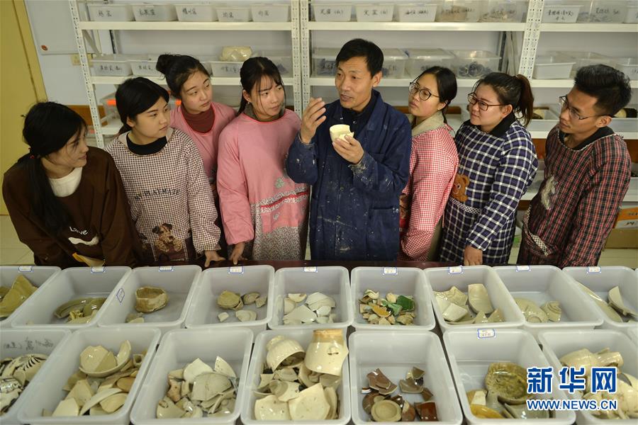 11月29日,在邢臺(tái)學(xué)院陶瓷藝術(shù)實(shí)驗(yàn)室,非遺代表性傳承人張志忠(左二)為大學(xué)生介紹邢窯陶瓷燒制技藝。2016年,河北邢臺(tái)學(xué)院開(kāi)設(shè)國(guó)家級(jí)非物質(zhì)文化遺產(chǎn)“邢窯陶瓷燒制技藝”課程,聘請(qǐng)非遺代表性傳承人作為授課老師,學(xué)生通過(guò)學(xué)習(xí)邢窯陶瓷燒制技藝,感受傳統(tǒng)陶瓷藝術(shù)的魅力。邢窯是隋唐時(shí)期七大名窯之一,是我國(guó)北方最早燒制白瓷的窯場(chǎng)。邢窯始燒于北朝,盛于隋唐,終于元代,燒造時(shí)間大約為900年。新華社發(fā)(陳雷 攝) -