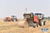 6月16日,小麥秸稈打捆機(jī)在定州市東留春鄉(xiāng)北邵村麥田作業(yè)。新華社記者 朱旭東 攝