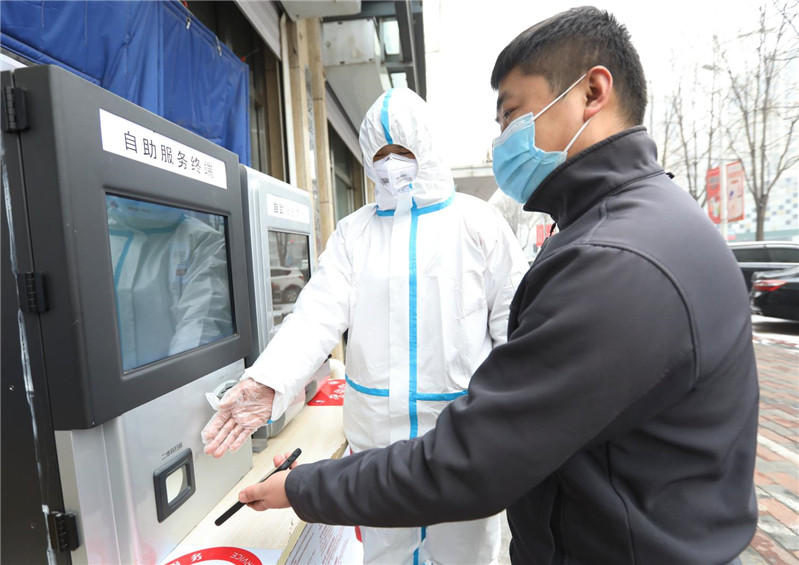 在固安縣新昌街百川燃?xì)鉅I(yíng)業(yè)點(diǎn),社區(qū)代辦員通過(guò)自助終端設(shè)備為群眾代買(mǎi)天然氣(央廣網(wǎng)發(fā) 門(mén)叢碩 攝)
