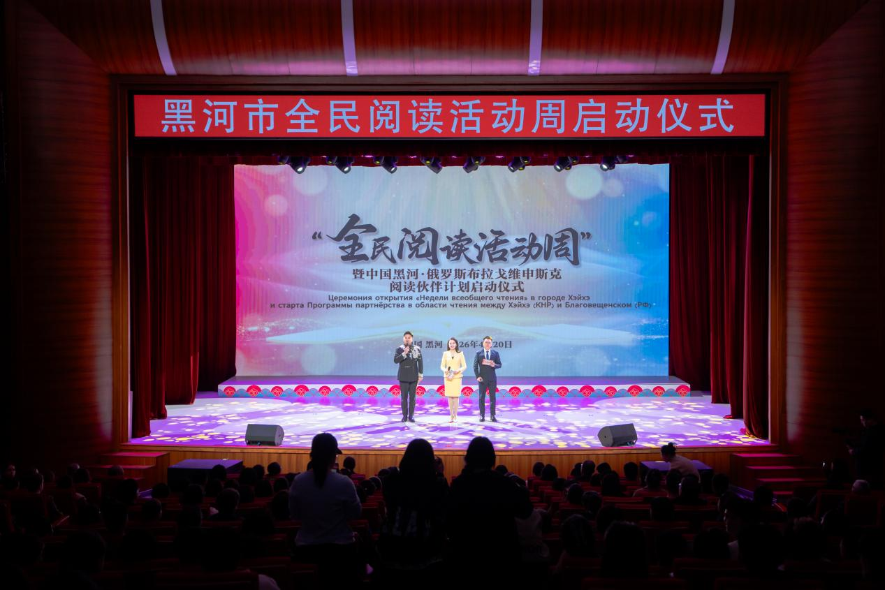 本次活動(dòng)以“書香黑河 閱見愛輝”為主題,由黑河市委宣傳部與愛輝區(qū)委、區(qū)政府聯(lián)合主辦。啟動(dòng)儀式通過“閱見邊城·碩果盈枝”“一江連心·書香無界”“薪火相傳·書香滿城”三大篇章,全面展現(xiàn)了黑河市全民閱讀的豐碩成果和書香浸潤邊城的濃厚氛圍。啟動(dòng)儀式上,中國黑河與俄羅斯布拉戈維申斯克簽署“閱讀伙伴計(jì)劃合作備忘錄”。同日,黑河市愛輝區(qū)璦琿圖書館同步開展了少兒藝術(shù)團(tuán)繪本閱讀、中俄經(jīng)典文學(xué)共讀等閱讀活動(dòng)。
