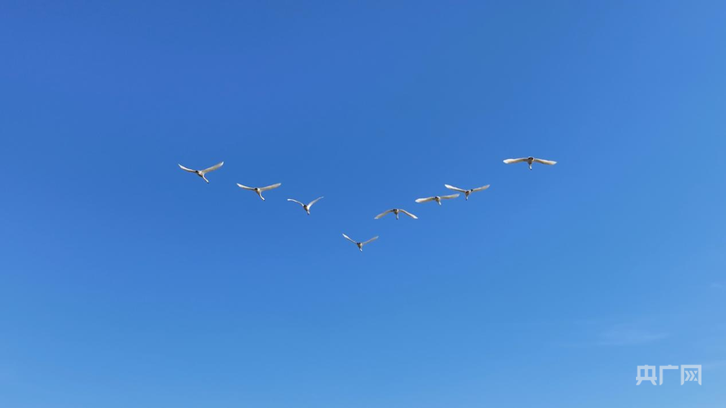 天鵝在空中排成“人”字(央廣網(wǎng)發(fā) 李慶海 攝)