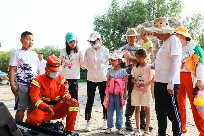 消防員為景區(qū)游客講解消防知識。哈爾濱市森林消防支隊(duì) 供圖