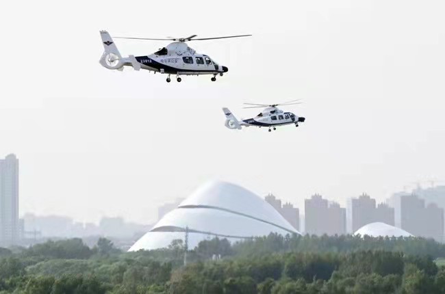 直升機(jī)正在巡邏。黑龍江省公安廳 供圖